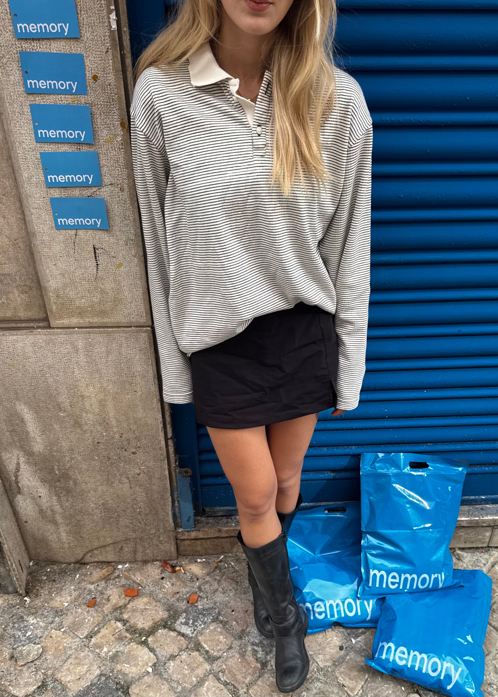 The cream striped polo channels a timeless mood through contrast black stripes and a relaxed silhouette. Designed for everyday wear yet elevated through precise detailing, it captures the essence of Memory — familiar, warm, and undeniably personal.